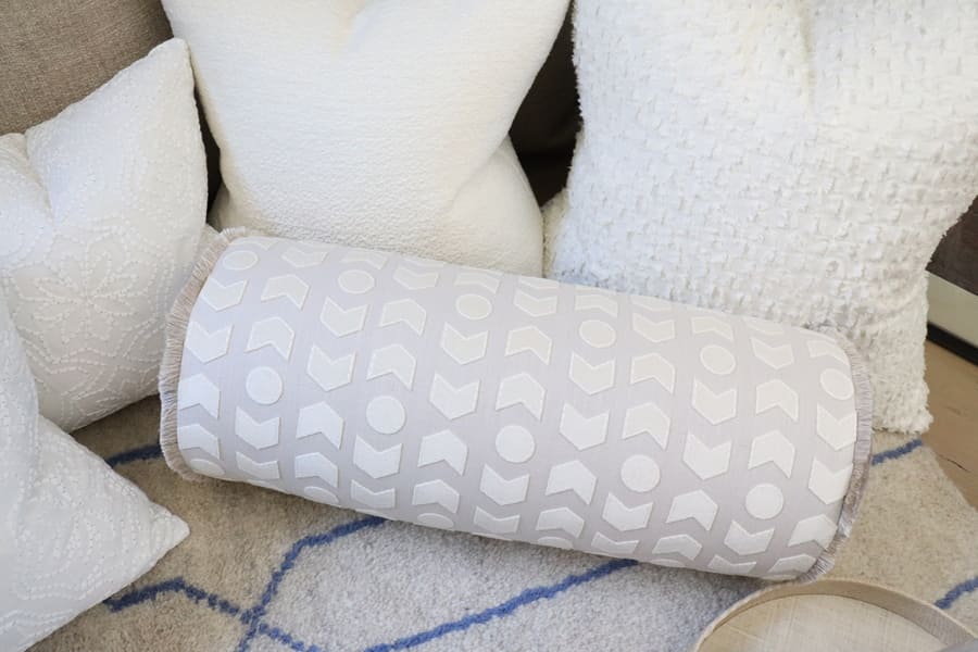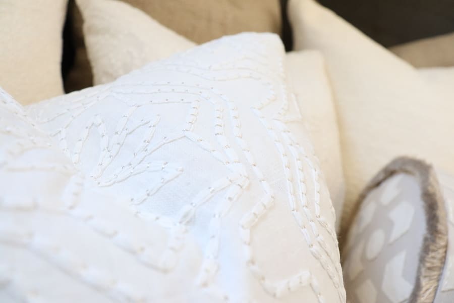No true hygge hideaway would be complete without a group of beautiful pillows. Ideal for lounging, these pillows made by Franco Saldano of First Option Upholstery feature gorgeous Fabricut and Romo fabrics and trim. I kept the colorway crisp and clean with creams, off-whites, and linen tones, but opted for lots of texture with embroidery, applique, and fringe. This adds visual interest and depth to the space.